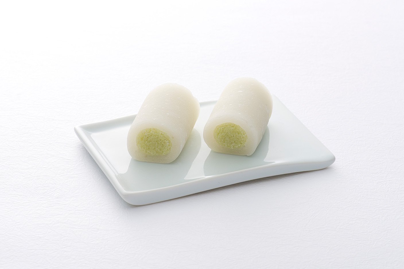 なぜ初代はこれほど異色で大胆な発想の菓子を生み出したのでしょうか。そのきっかけや意図については細かく残されておりませんが、「日本橋には青物市場があり(現在のコレド日本橋裏あたりは当時「青物町」といった)そこで伊豆湯ヶ島のわさびを扱っておりこの商品のヒントになった」という。わさびの独特な香りを生かし、その芯を巻いている白い求肥越しに透けて見えるわさびの緑が、涼感を呼び起こします。こうした色彩感覚に訴える初代の着想には、深い感銘を覚えます。