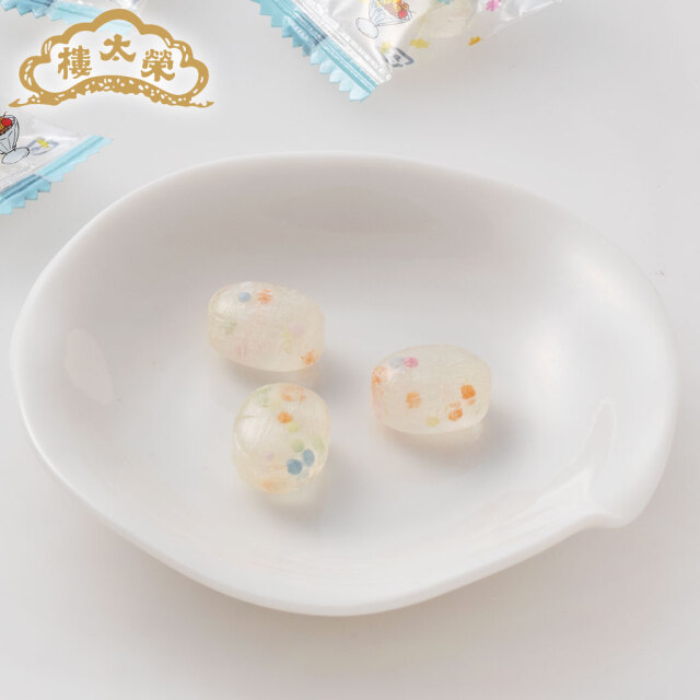 透明な飴にカラフルミンツが入ったかわいらしい見た目で、どこか懐かしさのあるすっきりとした甘さが魅力のキャンディー。