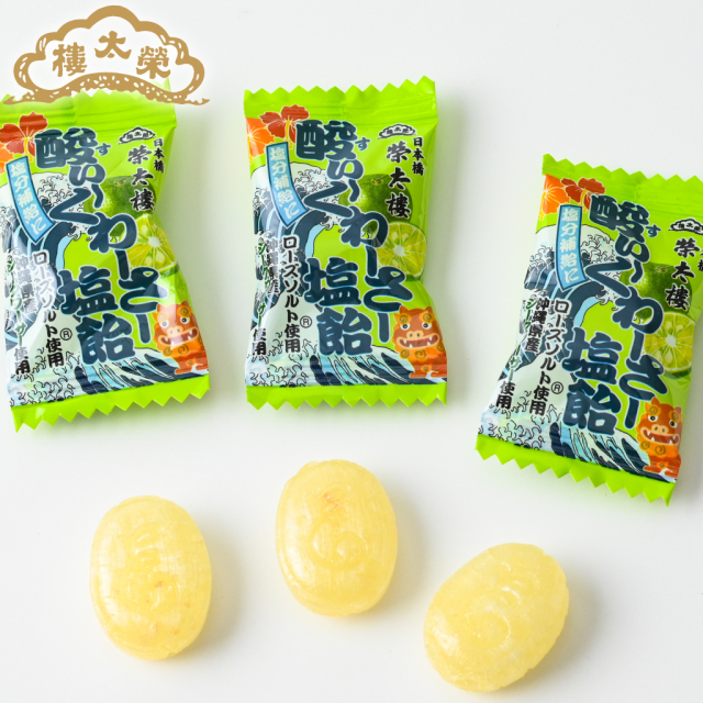 ローズソルト🄬使用の塩飴に沖縄県産のシークワーサーを合わせました。