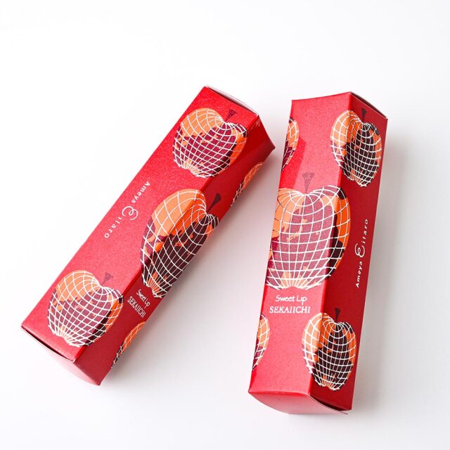 本商品の今後の生産・再販売の予定はございません。 長らくのご愛顧ありがとうございました。 みつ状のあめをグロスリップに見立てたチューブに詰めたAmeya Eitaroの人気商品「スイートリップ」から、青森県産の大玉りんご「世界一」が登場。 微かな酸味のあるさっぱりとした味わいが特徴です。 世界地図をイメージした限定パッケージにもご注目ください。