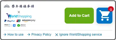 When you access the website from overseas, the “WorldShopping Cart”