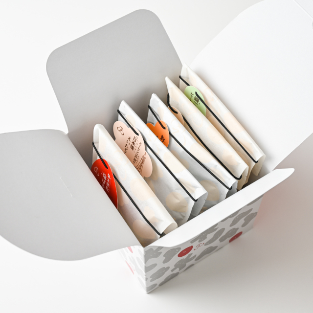 | 製品名: | にほんばしえいたろう おやつ菓子5袋詰合せ キューブBOX |