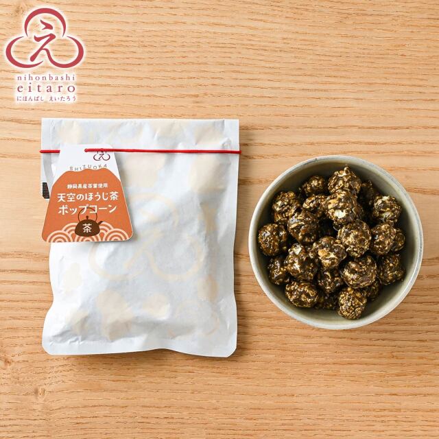 静岡県の山間地域で栽培された茶葉を使用した「天空のほうじ茶®」のポップコーン。直火で強火焙煎したほうじ茶の香ばしくふくよかな香りが広がります。
