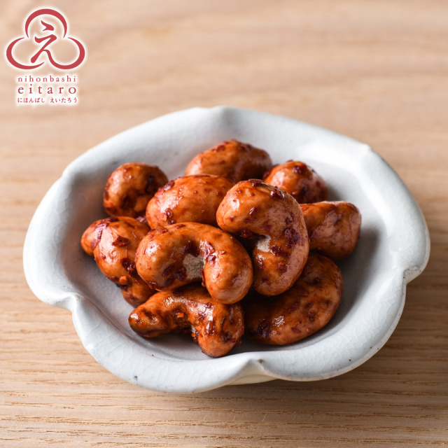 カシューナッツに衣掛けし、一味唐辛子をまぶしました。ピリッとした辛さが、大人の味わいです。