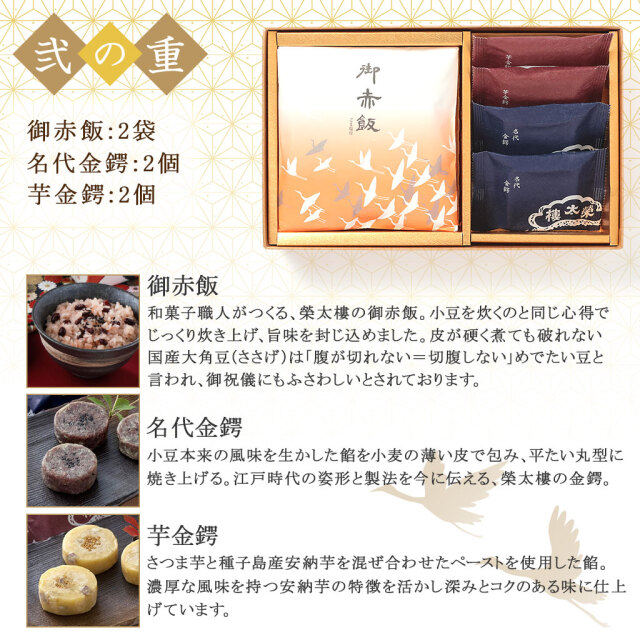 | 製品名: | 【数量限定・送料無料】榮太樓 新春 和菓子詰合せ 二段重 重箱【常温・同梱可能】 |