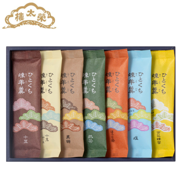 お茶請けやお出かけの際のおやつにもぴったり。全7種類のバラエティ豊かな詰合せです。榮太樓伝統の製法で仕立てる羊羹を、切らずにどこででも手軽にお召し上がりいただけます。