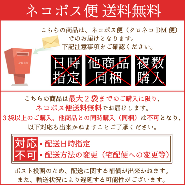※こちらの商品は「最大2袋」までのご購入に限り「ネコポス便(クロネコDM便)・送料無料」です。